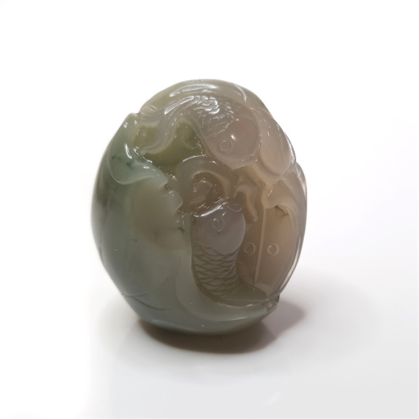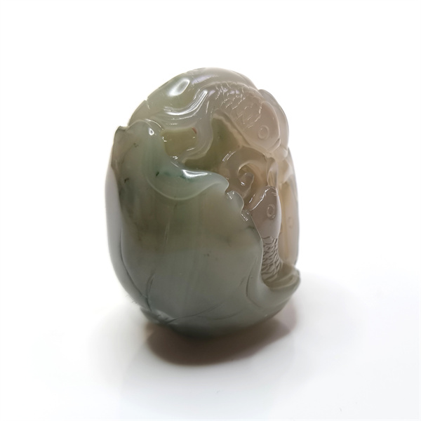 品名:紫绿玛瑙鱼跃龙门手把件