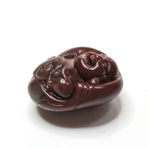 品名:紫绿玛瑙弥勒佛如意手把件