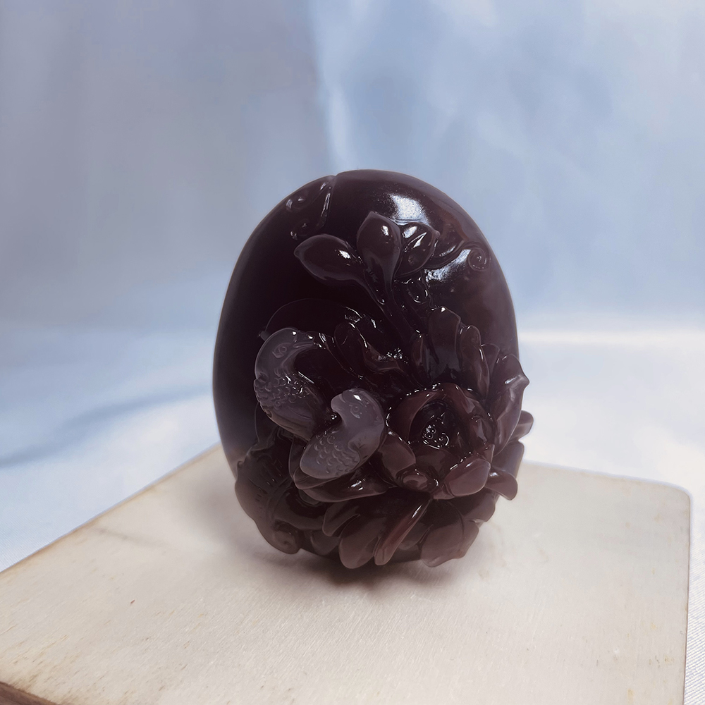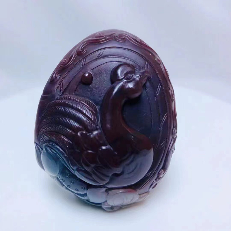 紫绿玛瑙凤凰牡丹把件
